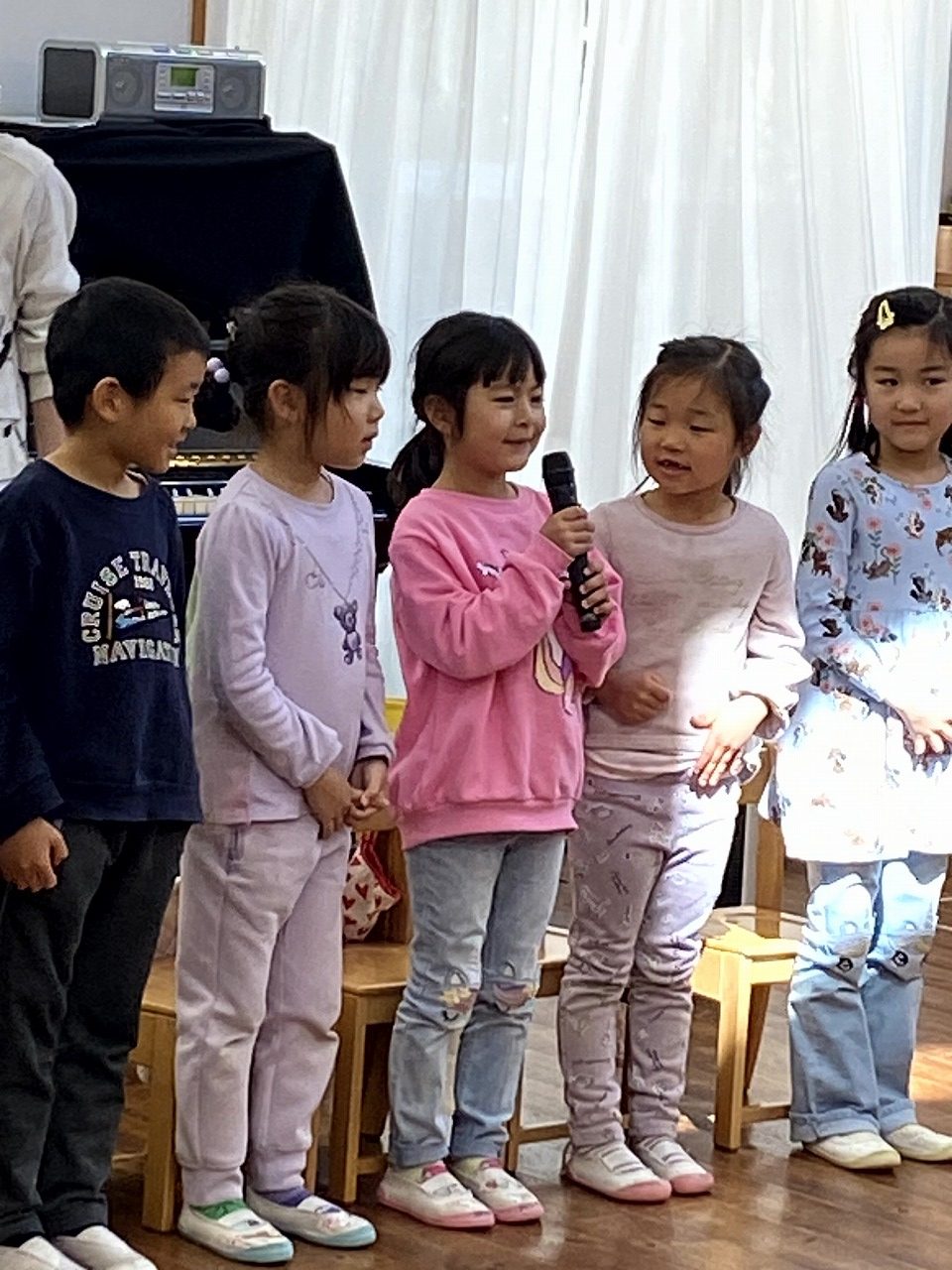 年長組は一人ひとり名前と小学校名を発表しました