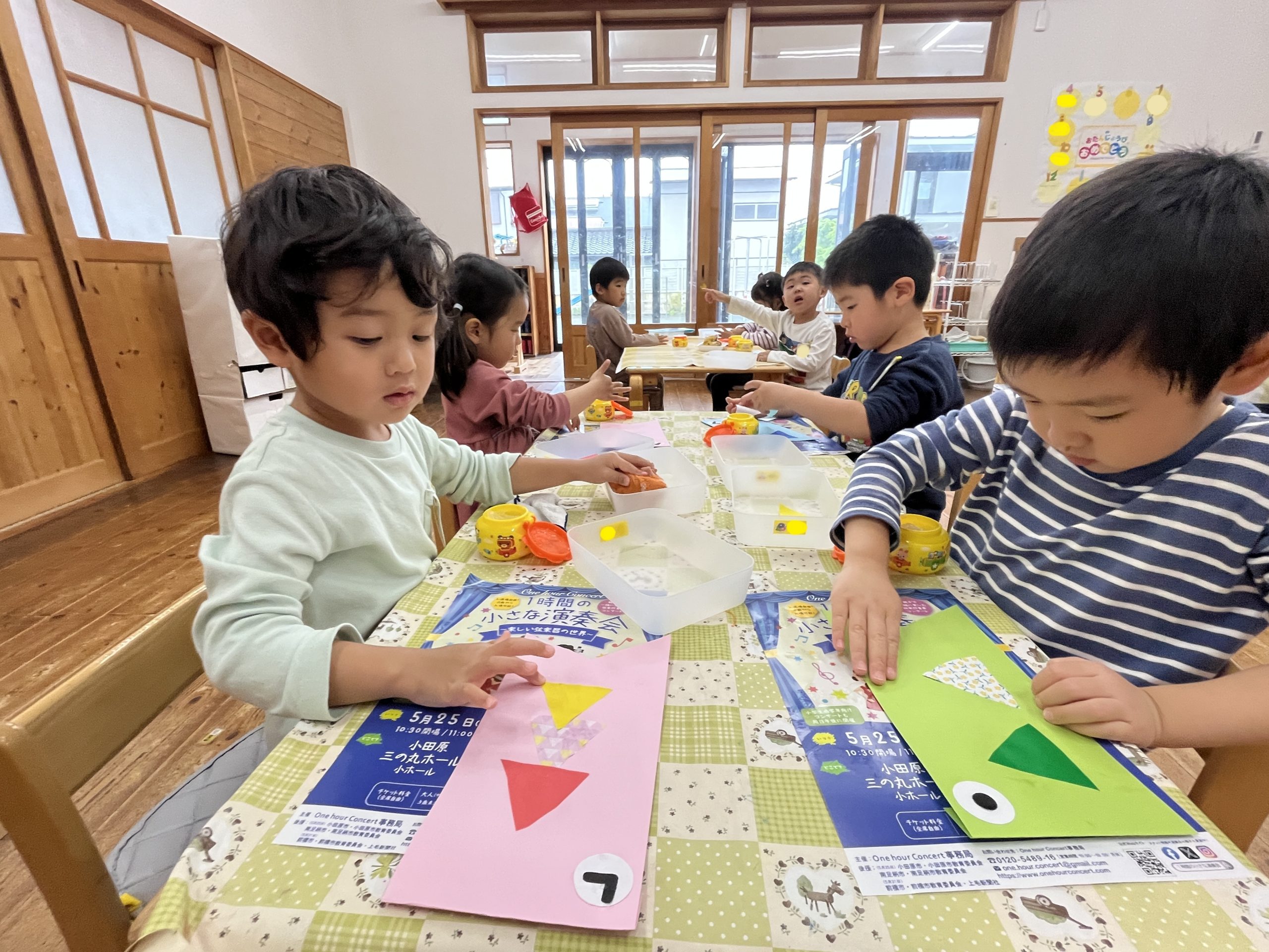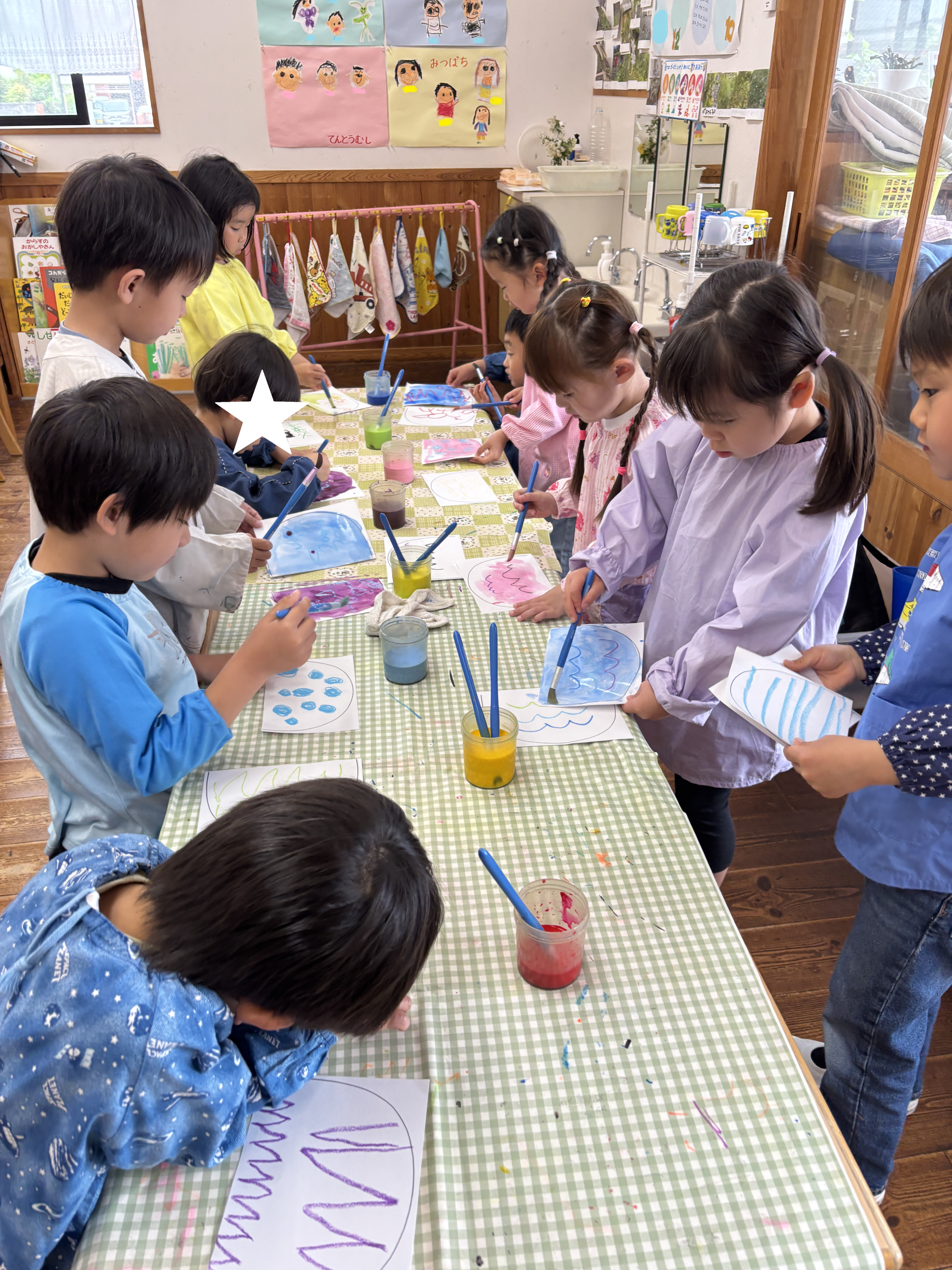 5歳児クラスは、グループで一つのこいのぼりをつくりました。