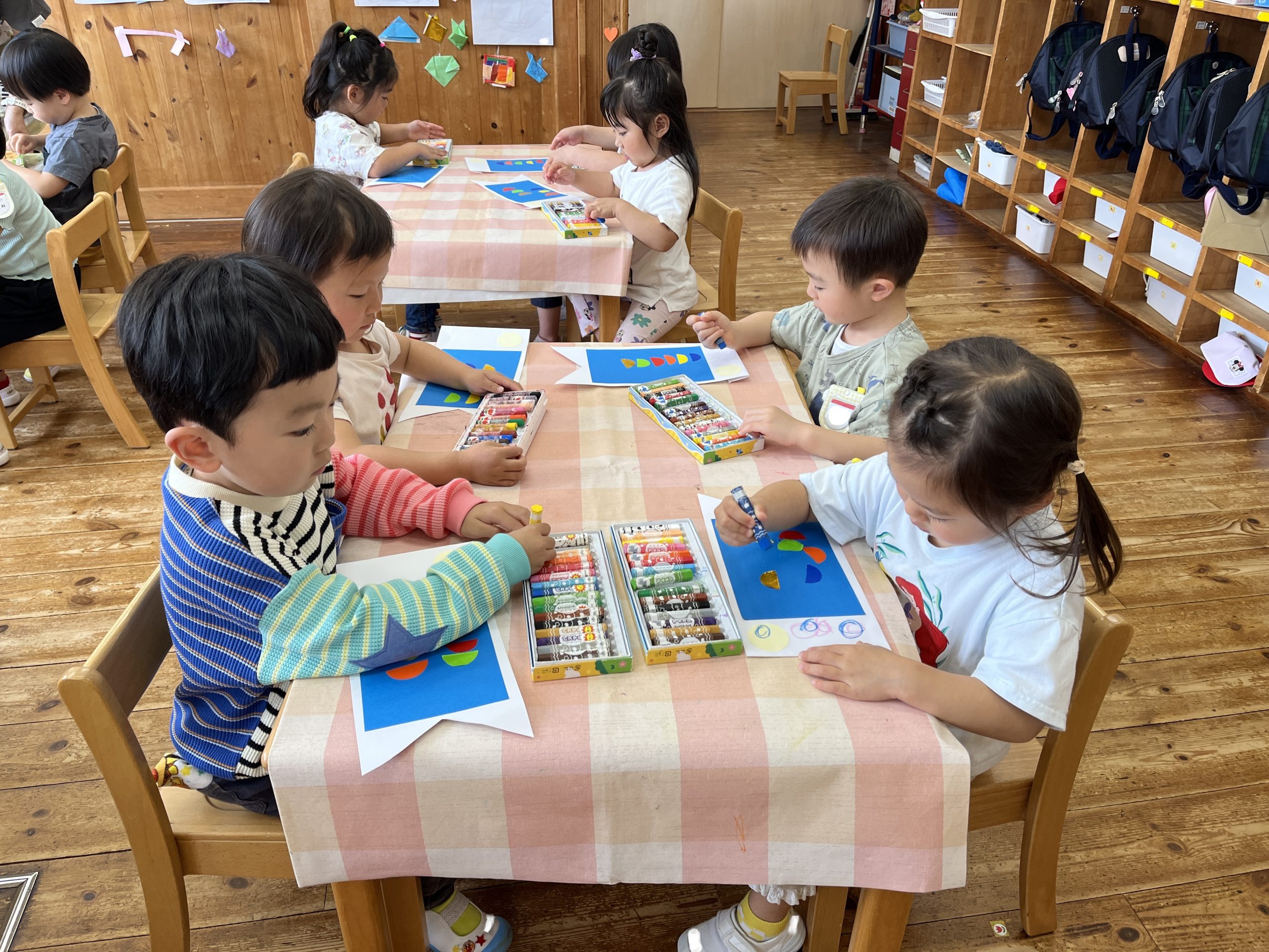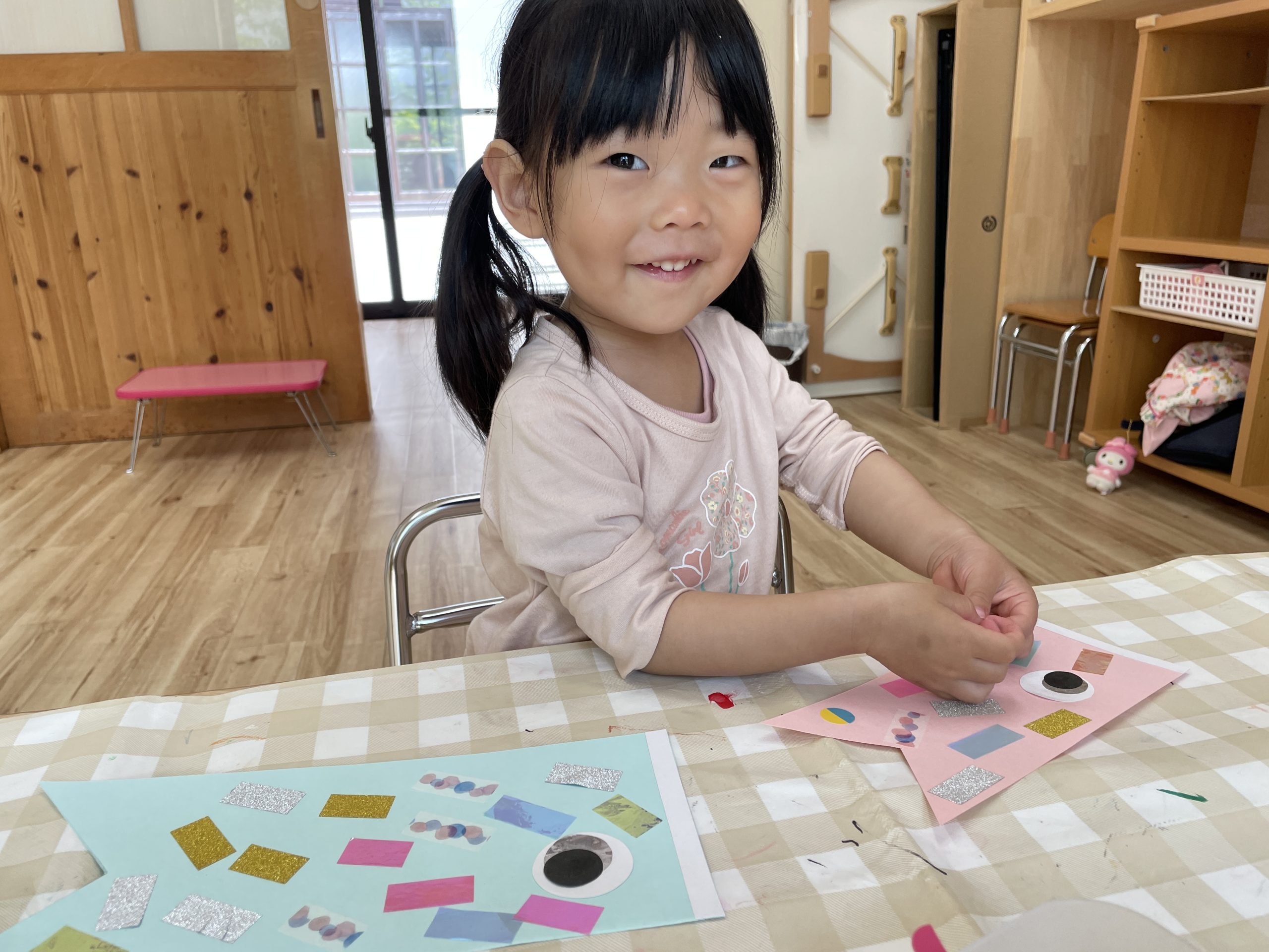 3歳児クラスは、うろこのシールを貼って目を描き入れました。