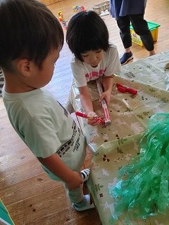 壊れるたびにお直しをする年中、年長の子どもたち。