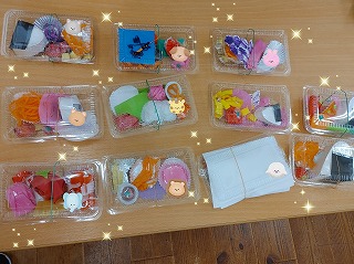 ポリ袋、折り紙、画用紙、毛糸、アルミカップ…色々な素材を使いお弁当を作りました!