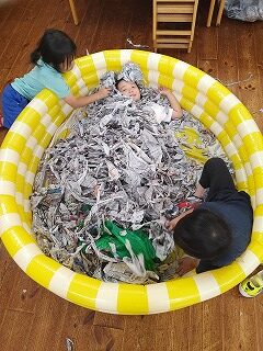 新聞紙プールで、鼻だけ残してかくれんぼ!