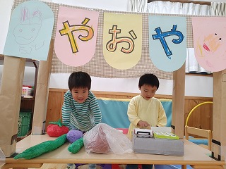 にじ組の時間に、そのお店をお借りしてごっこ遊びが始まりました。