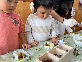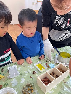 いつもは、お昼寝をする2歳児と年少組も時間を見つけて作りましたよ☆