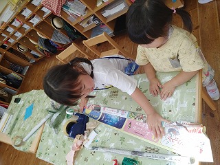 同じものを作りたいというお友だちに一緒に作ってあげる