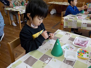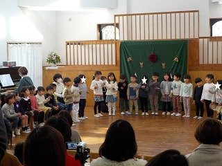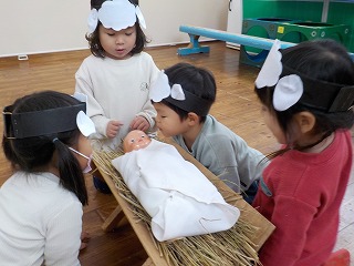 12月に入ると、幼稚園はクリスマス一色です。クリスマスが何の日かを初めて知る子どもたちも、お話を聞いたり聖歌を歌いながら『イエスさまのお誕生日』をお祝いする準備を始めました。