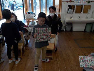 お楽しみの時間には、お家の方とクリスマスプレゼントの交換をして、嬉しいひと時を過ごしました。