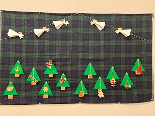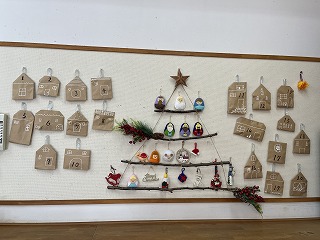 各クラスの壁面には、アドベントカレンダーが飾られます。毎日ひとつずつクリスマスにちなんだ飾りがでてきて「今日は何かなぁ…!」と子どもたちは毎日楽しみにしていました。
