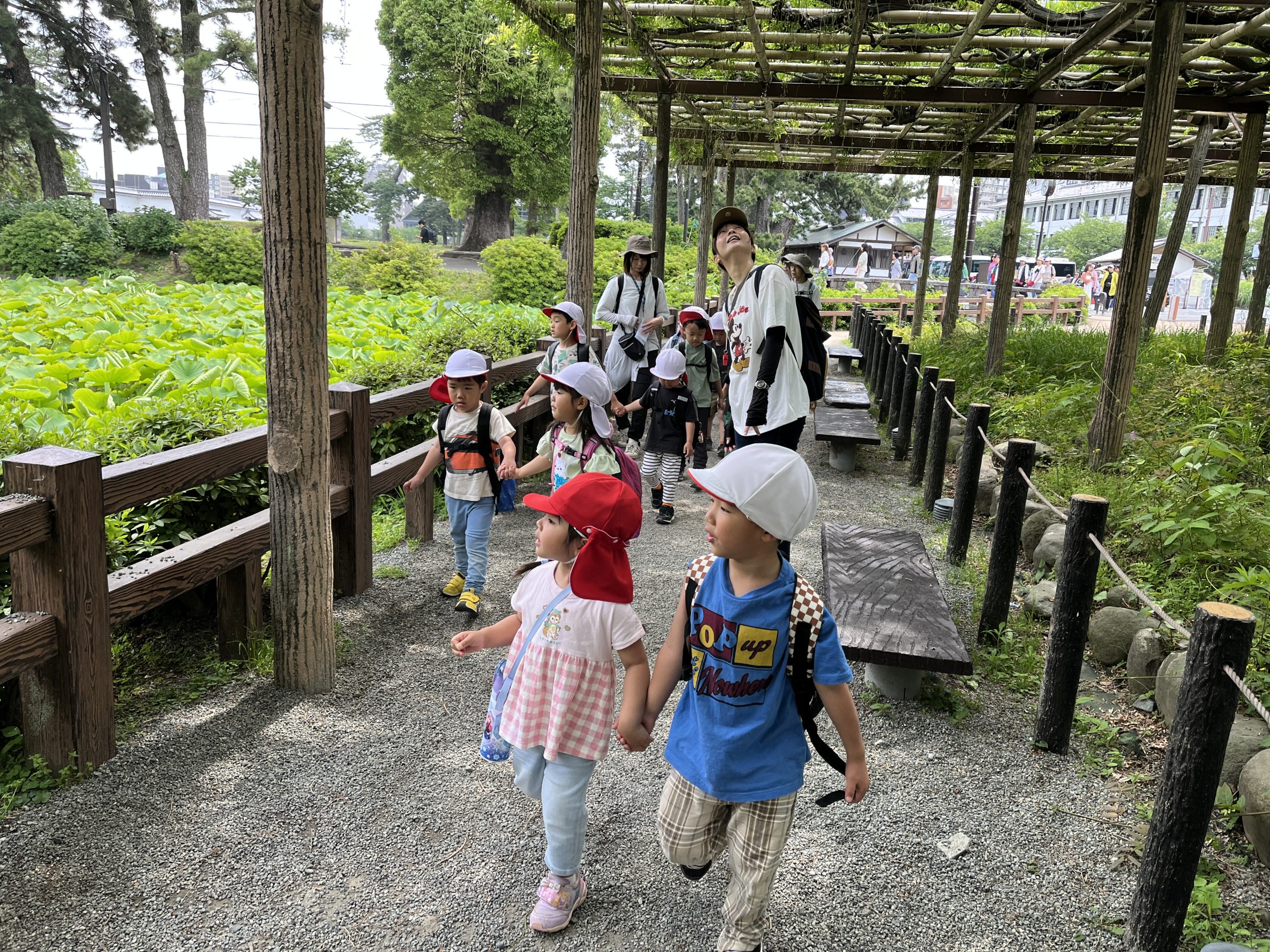急な坂道も、お兄さん・お姉さんたちがしっかりリードして歩いてくれました。