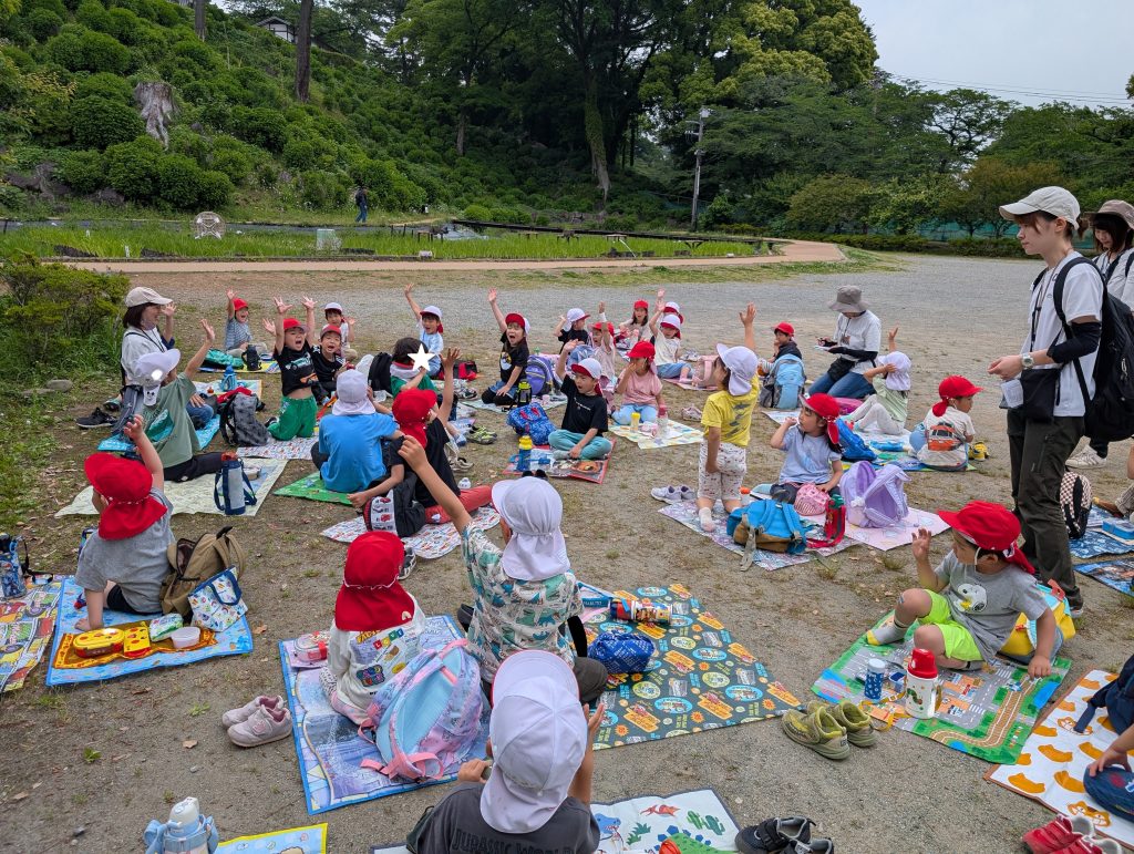 青空のもと、皆で食べたお弁当は美味しかったね!また、いろいろな場所に出かけていきたいです。