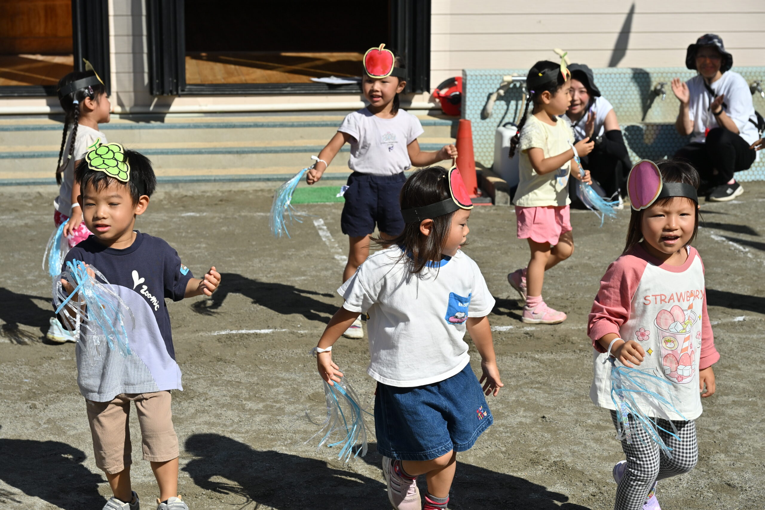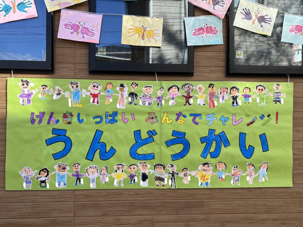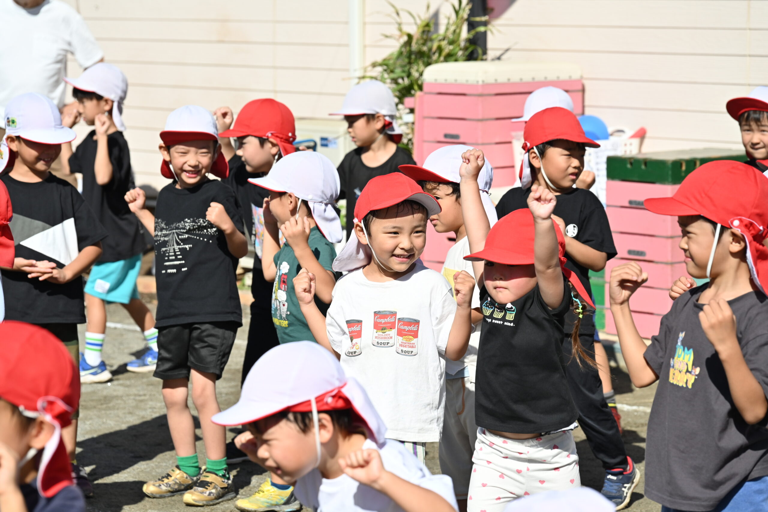 暑さを考慮して例年より2週間ほど遅らせた運動会が、爽やかな秋晴れの中行われました。今年のスローガンは『げんきいっぱい みんなでチャレンジ!」です。少し難しそうだなぁ…と思うことも、友だちとなら一緒に頑張れる‼ 準備の段階から、色々なことにチャレンジしました。
