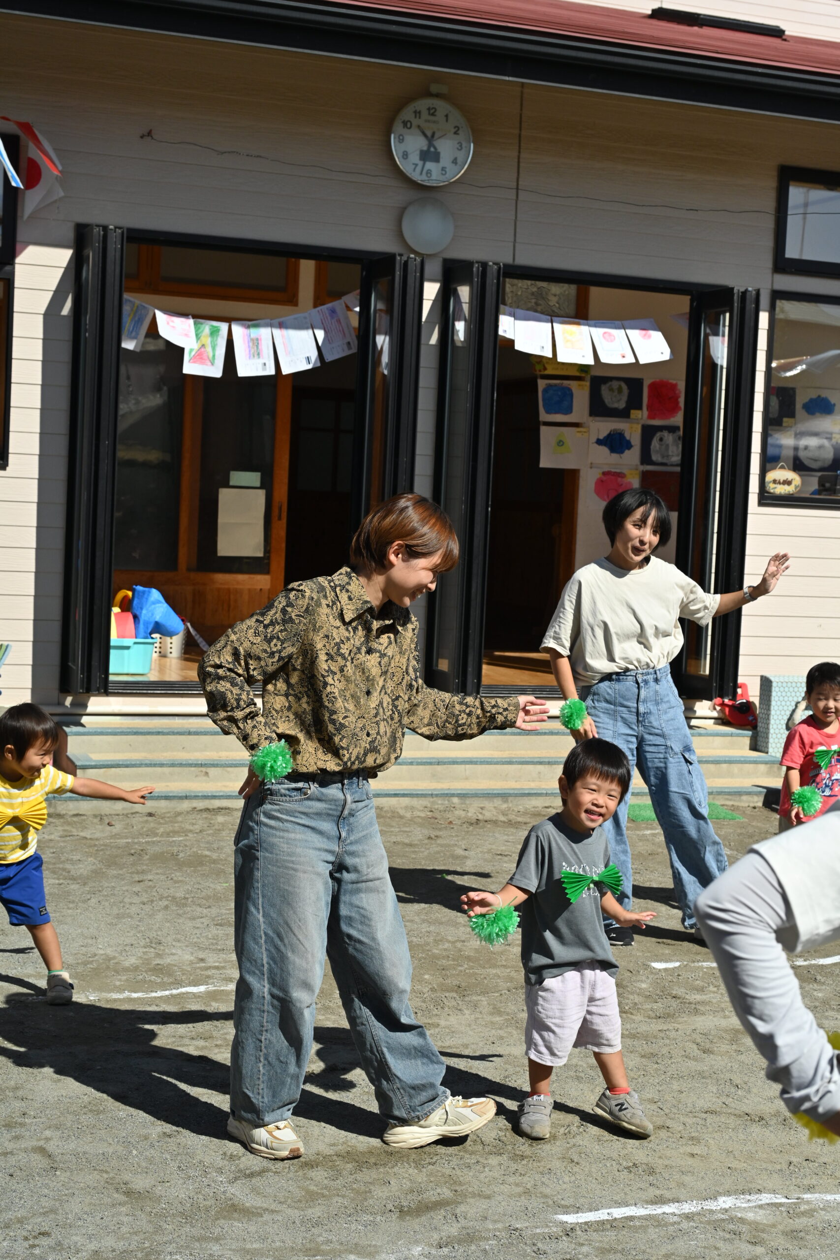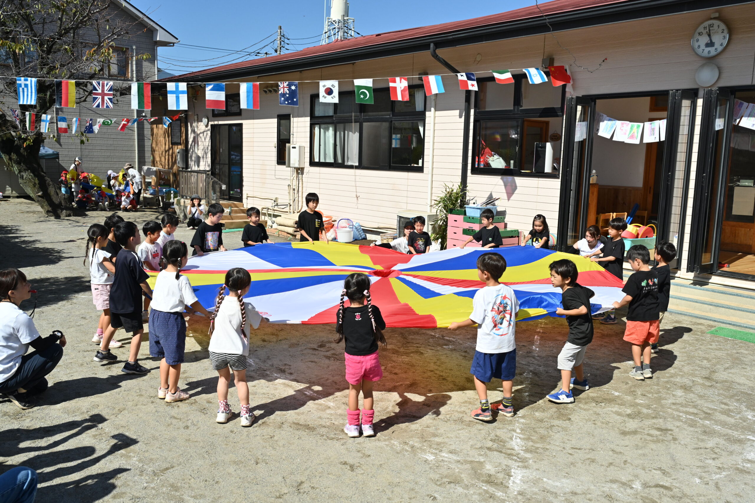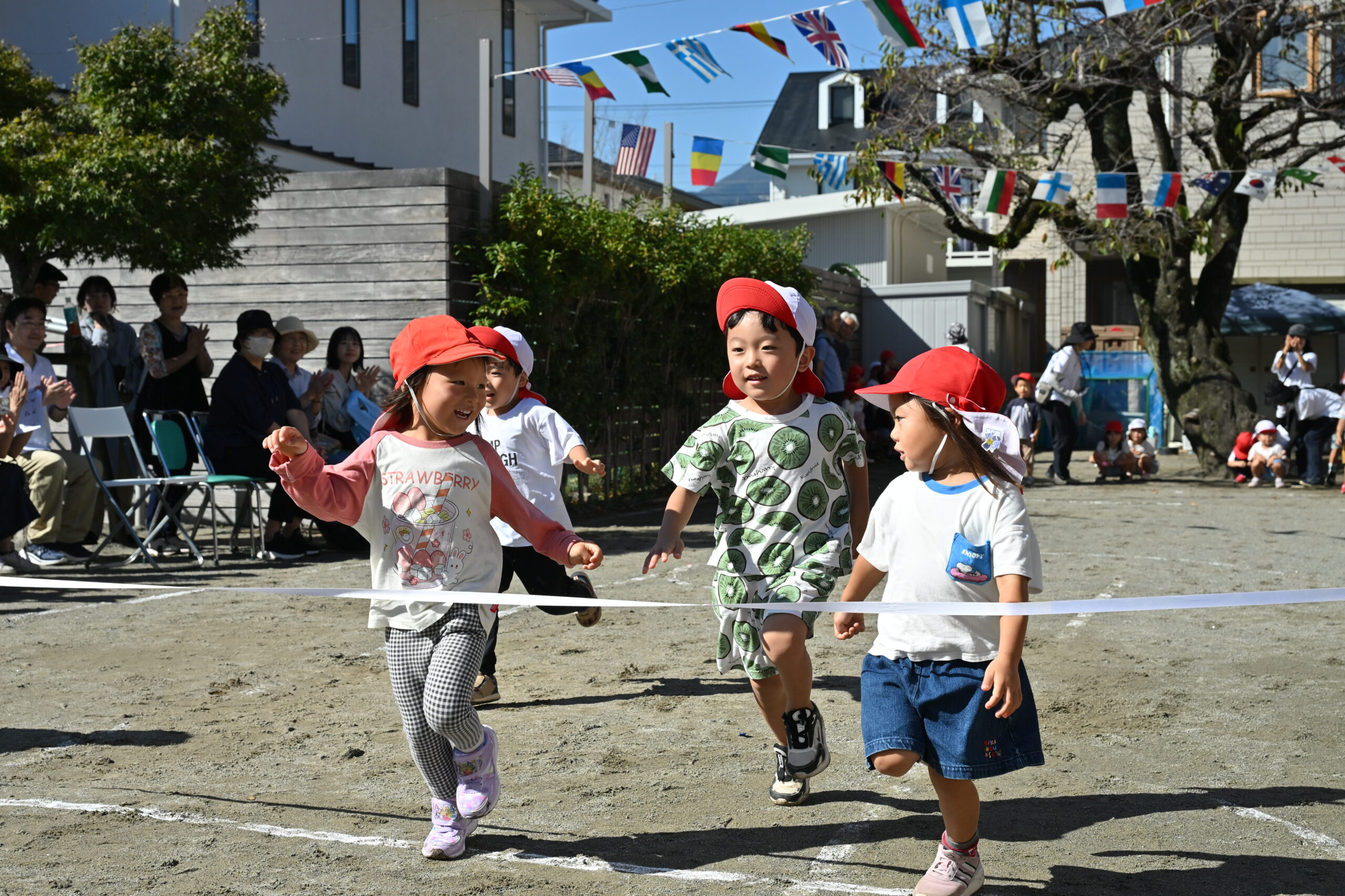 暑さを考慮して例年より2週間ほど遅らせた運動会が、爽やかな秋晴れの中行われました。今年のスローガンは『げんきいっぱい みんなでチャレンジ!」です。少し難しそうだなぁ…と思うことも、友だちとなら一緒に頑張れる‼ 準備の段階から、色々なことにチャレンジしました。