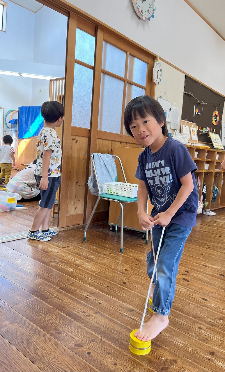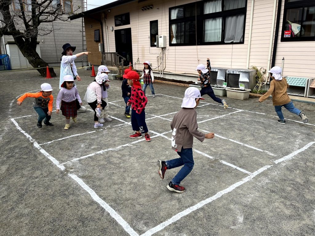 集団ゲームも盛り上がっています。これは「靴とり」。好きな遊びを通してのびのびと過ごしている子どもたちの様子は、しばらく続きそうです。