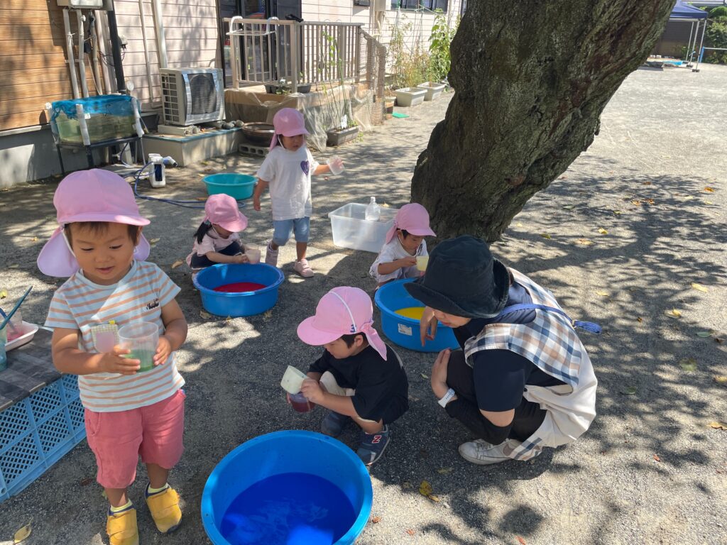 今週は色水遊びもしました。